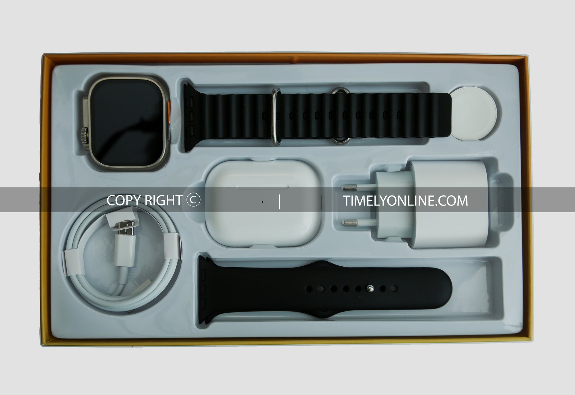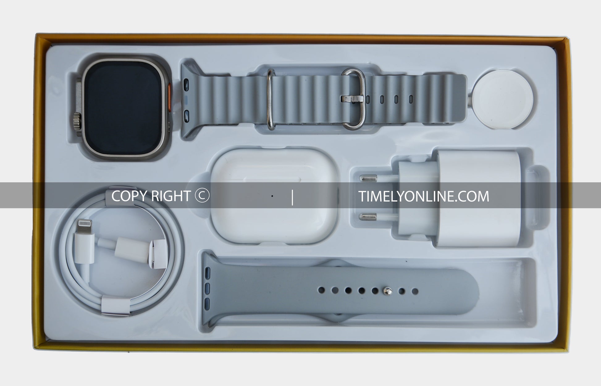 Stay powered up effortlessly with the wireless charger, providing convenience for both your smartwatch and AirPods or phone.