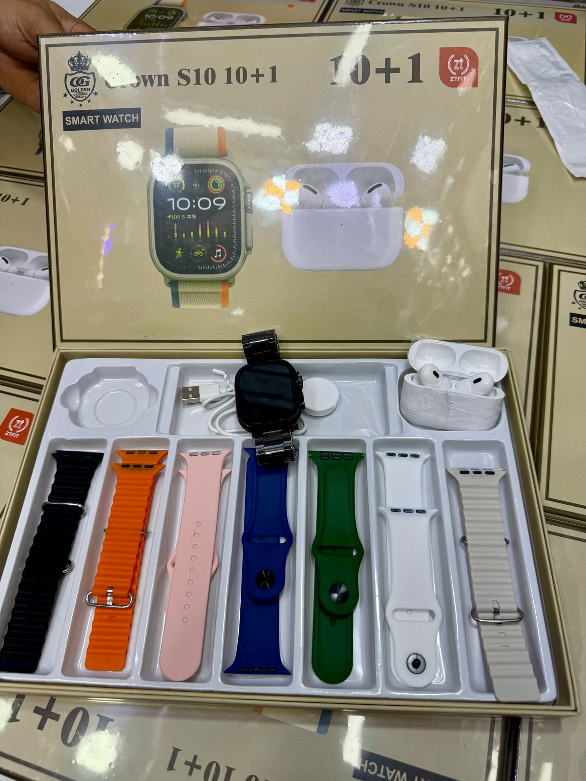 Crown S10 10+1 is more than just a smartwatch; it's a complete package that enhances your daily routine. From health monitoring to social connectivity and customization options, this suite has it all. Order now and experience the convenience and style that comes with Crown S10 10+1